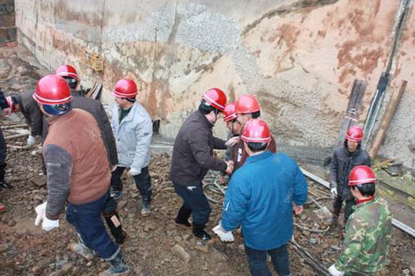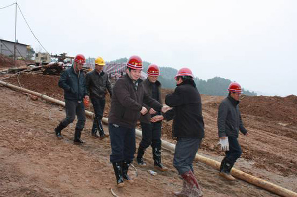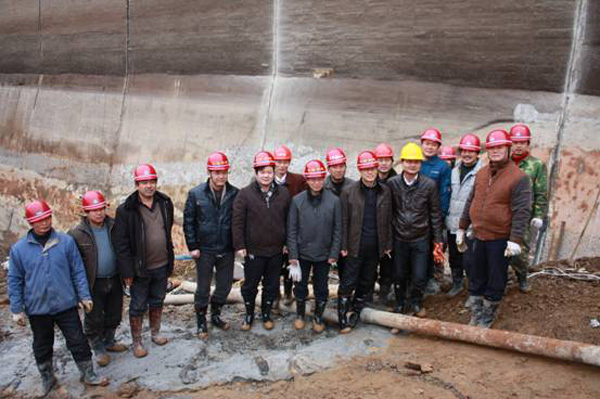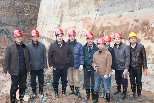 董事長、總經(jīng)理王元旦一行首先來到基坑澆筑、混凝土攪拌站等施工現(xiàn)場進行察看,與施工人員一一握手,并聽取了春節(jié)期間帶領(lǐng)員工奮戰(zhàn)在施工一線的公司副總經(jīng)理聶玉和的生產(chǎn)情況匯報。董事長、總經(jīng)理王元旦詳細詢問了攪拌站的生產(chǎn)能力能否滿足施工要求,工程的進展情況及后期施工中的各項措施,對項目部全體員工放棄節(jié)假日搶工期、保質(zhì)量、抓進度的奉獻精神給充分肯定和高度評價,他勉勵大家保證質(zhì)量安全的前提下,抓緊時間完成大壩防滲面板的施工、再苦再累也要咬緊牙關(guān)挺過去,并要求施工項目部合理安排好大家春節(jié)期間的工作和生活。