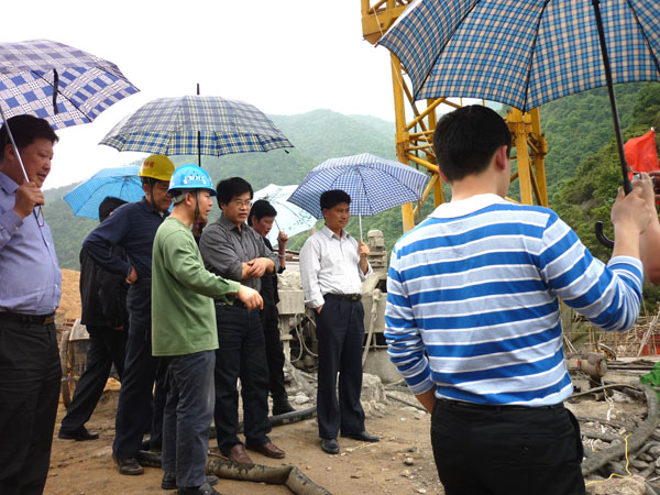 廖瑞釗副廳長在項目施工現場檢查施工生產情況,聽取了項目管理人員關于施工進度及質量安全等工作匯報。當他聽到泰和縣洞口水庫除險加固工程目前進展比較順利,主體工程已完成70%左右,計劃于2013年8月底項目全面完工時,廖瑞釗副廳長對工程的進展表示滿意,他要求參建各方再接再勵完成好下一步工作,全力配合,確保工程質量和安全。