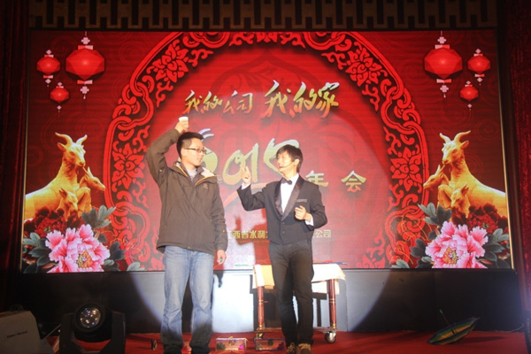 年會在喜慶的氛圍下拉開序幕,公司董事長王元旦發表了熱情洋溢的新年賀詞,并代表公司董事會向全體員工及家屬,向關心公司發展的社會各界朋友致以新春的祝福。回顧2014年,王董事長指出,在公司董事會的正確領導下,全體員工上下團結一心,攻堅克難,發奮有為,頑強拼搏,扎實工作,各項工作取得了令人鼓舞的成績,公司朝著質量好、品牌優、信譽高、市場廣的集團型企業方向邁進。展望2015年,王董事長表示,公司將繼續圍繞“一個系統,五大平臺”建設為工作重心,不斷改革創新,開拓進取,以更加強烈的責任擔當、更加務實的工作作風、更加飽滿的工作熱情,團結一心,同心同德,在實現公司夢的征程上闊步前行!王董事長熱情洋溢的講話,獲得了現場的陣陣掌聲。