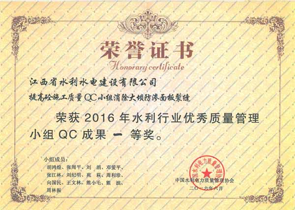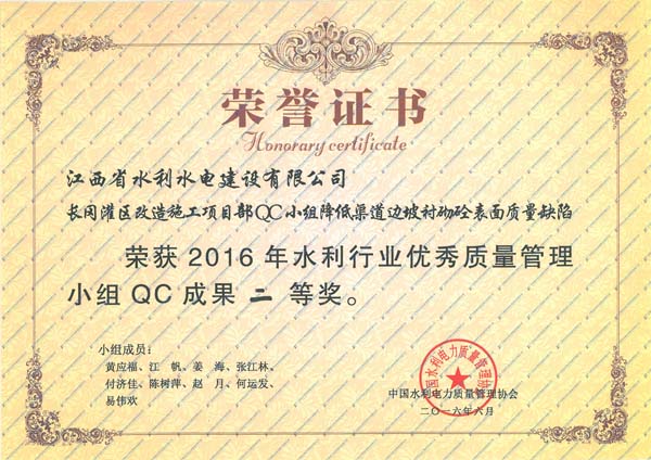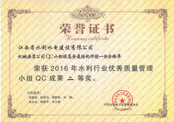 2016年6月20日至24日,中國水利電力質(zhì)量管理協(xié)會水利分會在安徽省安慶市,舉辦了2016年水利行業(yè)優(yōu)秀質(zhì)量管理小組成果發(fā)表會,并在本次發(fā)表會上發(fā)布了156項QC成果。中國水利電力質(zhì)量管理協(xié)會水利分會組織評審專家,對發(fā)表的QC成果進行了現(xiàn)場評審,對經(jīng)評審獲得一、二等獎的單位進行了表彰。本次成果發(fā)表會上,我公司共有3項QC成果獲一等獎,兩項QC成果獲二等獎,成績較往年有較大幅度提高。