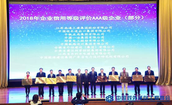 集團(tuán)資訊12月5日,中國(guó)對(duì)外承包工程商會(huì)第七屆理事會(huì)第四次全體會(huì)議在山東濟(jì)南隆重召開(kāi),來(lái)自全國(guó)各地的140多家理事單位的300多名代表參加會(huì)議。公司董事、海外公司執(zhí)行董事張周平出席會(huì)議。會(huì)議頒發(fā)了“2018年企業(yè)信用等級(jí)評(píng)價(jià)AAA級(jí)企業(yè)(部分)”牌匾,公司憑借良好的業(yè)績(jī)和口碑,再次榮獲中國(guó)對(duì)外承包工程企業(yè)信用評(píng)價(jià)AAA級(jí)信用企業(yè),并在現(xiàn)場(chǎng)受邀上臺(tái)接受授牌。