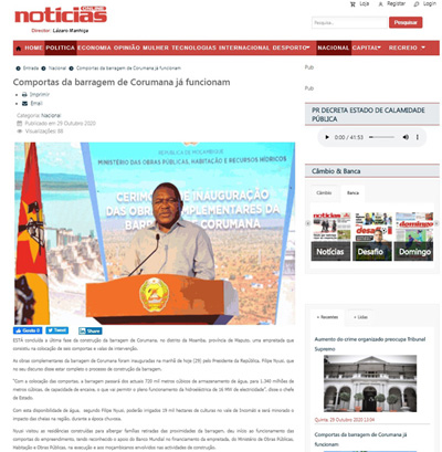 集團(tuán)資訊經(jīng)過一千多天夜以繼日的辛勤努力,集設(shè)計(jì)、制造、施工于一體的莫桑比克Corumana大壩項(xiàng)目終于迎來了竣工的喜悅時刻。10月29日,莫桑比克總統(tǒng)紐西閣下親臨現(xiàn)場,為項(xiàng)目揭牌剪彩。