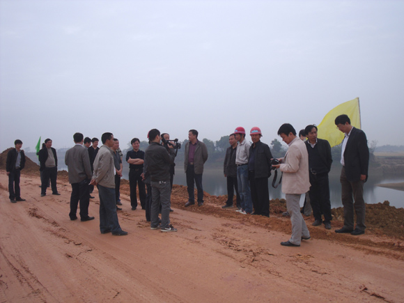 文林副廳長(zhǎng)仔細(xì)察看了項(xiàng)目施工現(xiàn)場(chǎng)情況,并耐心聽取了我司項(xiàng)目經(jīng)理雷才文的工程情況匯報(bào)。梓埠1標(biāo)自去年11月份開工以來,目前已完成了馬鞍山電排站、周灣排灌站、堤腳拋石固腳、堤身深層攪拌防滲墻等項(xiàng)目,堤身土方填筑及混凝土預(yù)制塊制作正在緊張進(jìn)行。文副廳長(zhǎng)聽完匯報(bào)后,對(duì)梓埠1標(biāo)的施工工作提出了幾點(diǎn)要求,一是業(yè)主單位要盡快解決好征地問題,為工程的順利實(shí)施創(chuàng)造良好條件;二是施工單位要抓住晴好天氣,加快堤身土方填筑及預(yù)制塊制作進(jìn)度,并加強(qiáng)質(zhì)量控制。