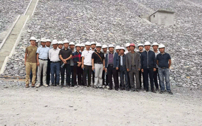 學(xué)習(xí)團(tuán)第一站是大麥西項(xiàng)目,項(xiàng)目負(fù)責(zé)人熊錦江帶領(lǐng)大家參觀了項(xiàng)目營(yíng)地并對(duì)項(xiàng)目營(yíng)地規(guī)劃建設(shè)、布置原則,水電解決方案等作了介紹。學(xué)員們隨后又參觀了油料庫(kù)、鋼筋加工、砂石料生產(chǎn)系統(tǒng)、混凝土制拌系統(tǒng)、上壩公路、導(dǎo)流涵管、溢洪道及主壩施工區(qū),項(xiàng)目負(fù)責(zé)人給學(xué)員們講解了現(xiàn)場(chǎng)各個(gè)作業(yè)面的安全預(yù)防把控、管理核心、質(zhì)量控制點(diǎn)、施工工藝程序等。學(xué)習(xí)期間,學(xué)員們和項(xiàng)目部在會(huì)議室召開了簡(jiǎn)短的座談會(huì),大家觀看PPT并進(jìn)行交流,通過溝通學(xué)員們進(jìn)一步了解和掌握了大麥西項(xiàng)目的難點(diǎn)要點(diǎn)。