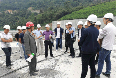 第二站,學(xué)習(xí)團(tuán)來到新屯水庫(kù),跟隨著項(xiàng)目管理團(tuán)隊(duì)參觀了導(dǎo)流隧洞、上壩公路、主壩施工區(qū)、進(jìn)水塔、溢洪道、沉降觀測(cè)室、料場(chǎng)、復(fù)建公路等施工區(qū)域,隨后由項(xiàng)目副經(jīng)理向國(guó)華、測(cè)量負(fù)責(zé)人鄒國(guó)群及質(zhì)量負(fù)責(zé)人廖軼先分別就各自負(fù)責(zé)的工作內(nèi)容向?qū)W員們進(jìn)行了現(xiàn)場(chǎng)授課。通過現(xiàn)場(chǎng)學(xué)習(xí),學(xué)員們了解到該工程七大特點(diǎn)。
